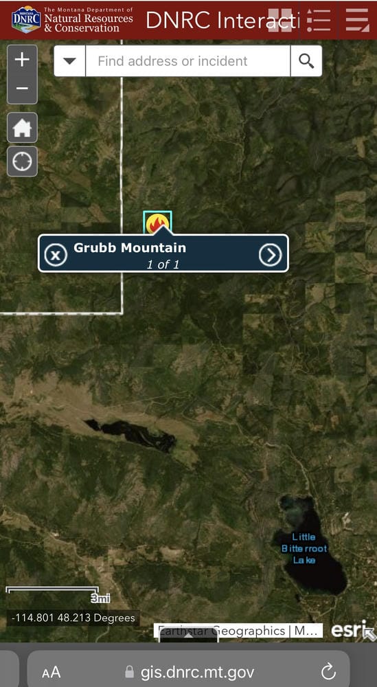 There is a wildfire near Marion named the Grubb Mountain Fire. We don’t have any news yet. Will update when more info is available. For more info see The DNRC’s interactive map (website address is listed in photo/screenshot below.)