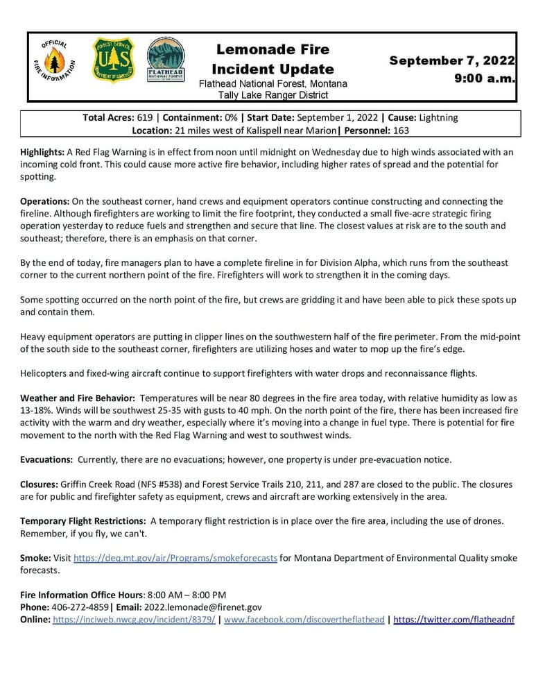 Lemonade Fire Update — 09/07/2022 Published on September 7, 2022 · By MFD Staff Share this post: Email (opens in a new window) Facebook (opens in a new tab) X (opens in a new tab) ← Back to News